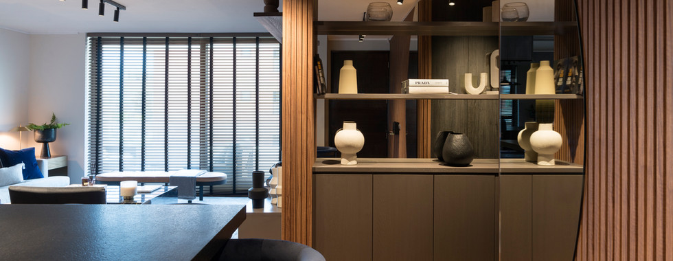 El departamento elegido es de arquitectura integrada, o sea la cocina unida con el living, lo que facilitó poder diseñar este look de un espacio con un gran living comedor como si fuera la suite presidencial.